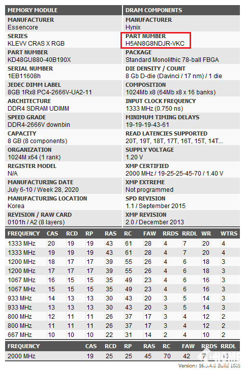 当然,对于一款面向玩家们的高频内存,4000MHz绝对不是我们的极限。经过Thaiphoon Burner检测,科赋CRAS X RGB DDR4-4000MHz内存采用的是SK Hynix的“DJR”颗粒,熟悉内存超频的玩家们都知道,这种颗粒还是具有很大潜力的。