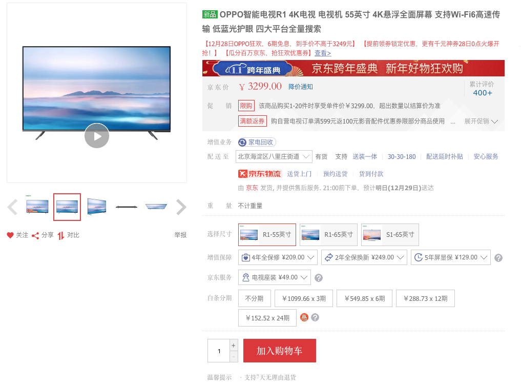 目前OPPO智能电视R1 55寸版售价为3299元,相信在京东王牌巅峰超级盛典上,OPPO智能电视R1将迎来更为超值的价格。