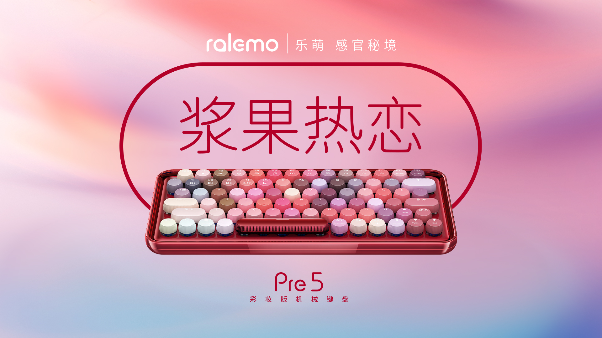 ralemo Pre 5彩妆版键帽是百褶圆形形态,轻甜可爱撩人心弦。87键布局搭配雷柏自主办公机械轴,6000万次单轴使用寿命,1.2mm左右总行程轻柔触碰,清新、灵动、通透。