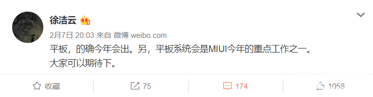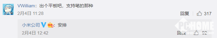 小米集团徐洁云指出,小米平板新品的确会在今年推出,并且平板系统会是MIUI今年的重点工作之一,大家可以期待一下。在前些日小米公司发布的微博下方,有网友评论道“出个平板吧,支持笔的那种”,小米公司回复到“安排”,可见小米平板新品是带笔的。