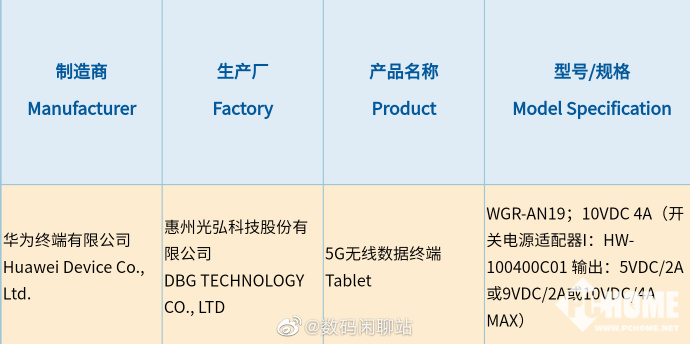 2月10号消息,华为一款平板电脑已经通过国家3C认证,标配40W快充。