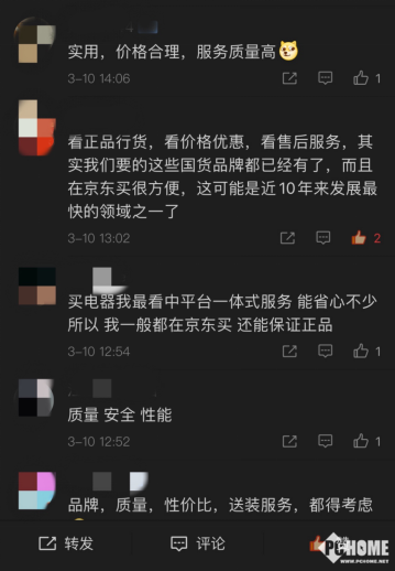 看到很多网友和媒体都在人民网品质电器大调查的投票评论里疯狂打call京东,有人说京东的正品行货保证让身为网购小白的父母都能剁手无忧;也有人说京东总是在第一时间上线各大品牌的最新产品,已经成为了自己追赶潮流的拔草圣地;还有很多网友对京东的售后服务赞不绝口,以旧换新、30天价保、只修不换等贴心服务都是他们安心买买买的不二法宝。