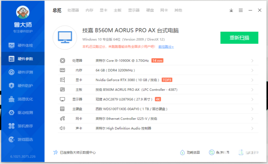 技嘉B560M平台WHITE主题主机硬件参数一览