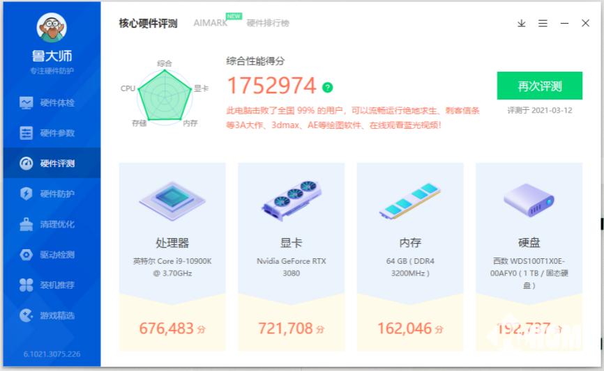 最后留个小彩蛋,大家猜猜这台“WHITE”主题的电脑能够跑多少分呢?答案是:175W!