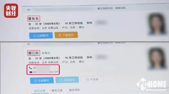 记者又分别在前程无忧和猎聘网的企业账户进行体验,只需支付费用,便可以下载到带有求职者姓名、电话、邮箱地址等关键信息在内的完整简历。前程无忧和猎聘网也缺乏对下载后的简历信息,进行管理和监测。就这样,这些求职简历信息,在不知不觉中,被伸向个人简历的黑手肆意下载、多次倒卖,甚至流入诈骗团伙手中。