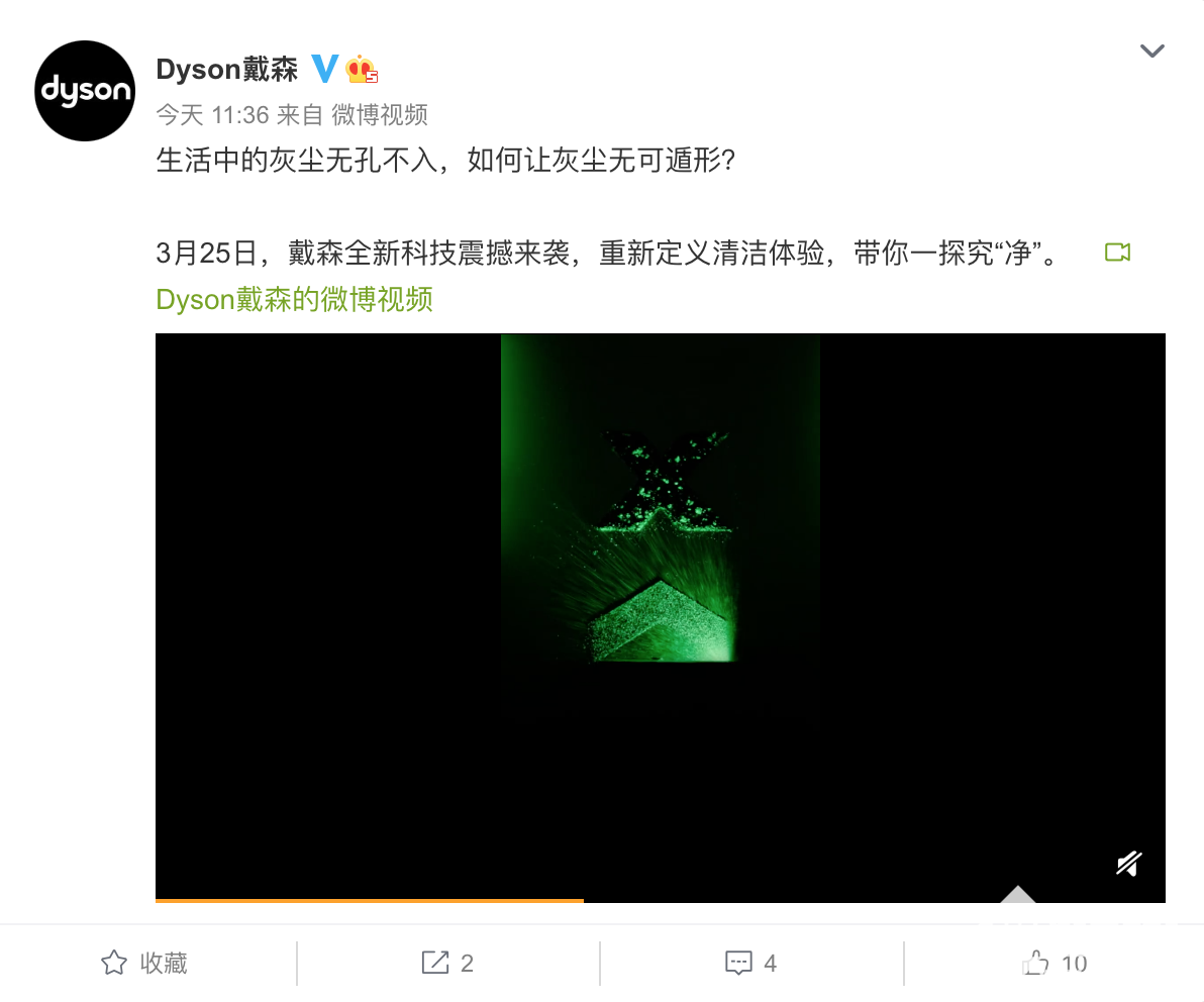 3月22日,戴森在其官方微博发布消息称将会在25日召开发布会,正式发布戴森全新黑科技。