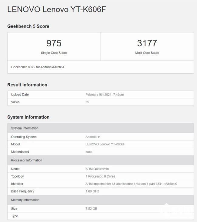 3月23号消息,代号为YT-K606F的联想即将发布的新款平板出现在Geekbench中,运行代号“kona”的芯片组,对应的处理器为骁龙870。
