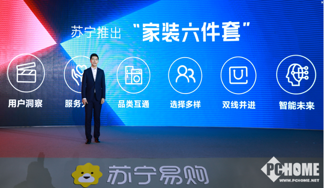 本次大会上,郭良宣布苏宁将通过“家装六件套”为消费者提供家装家电一站购服务。其在发布会上开玩笑的说,苏宁的“家装六件套”比家里的四件套更暖心。