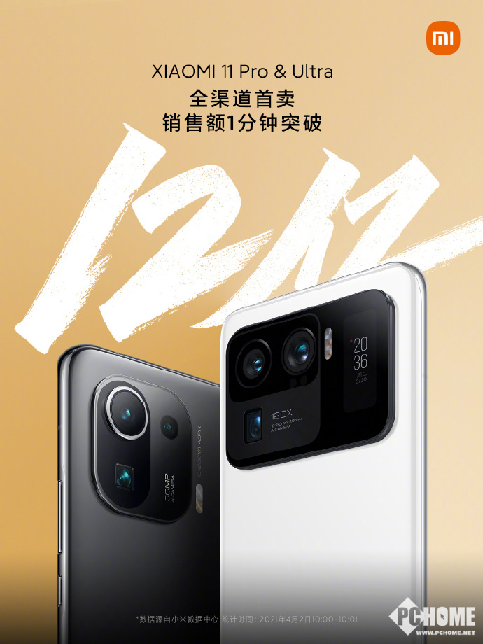 【PChome手机频道资讯报道】小米11 Pro与小米11 Ultra两部顶级旗舰机在今天迎来了首销,这两部手机不负众望,在开售1分钟过后就取得了12亿元的销售额,按照销量方面来推算的话,在1分钟的时间里至少卖出了超过10万部手机。目前在小米官网中,小米11 Ultra已经全面售罄,小米11 Pro还有现货发售。