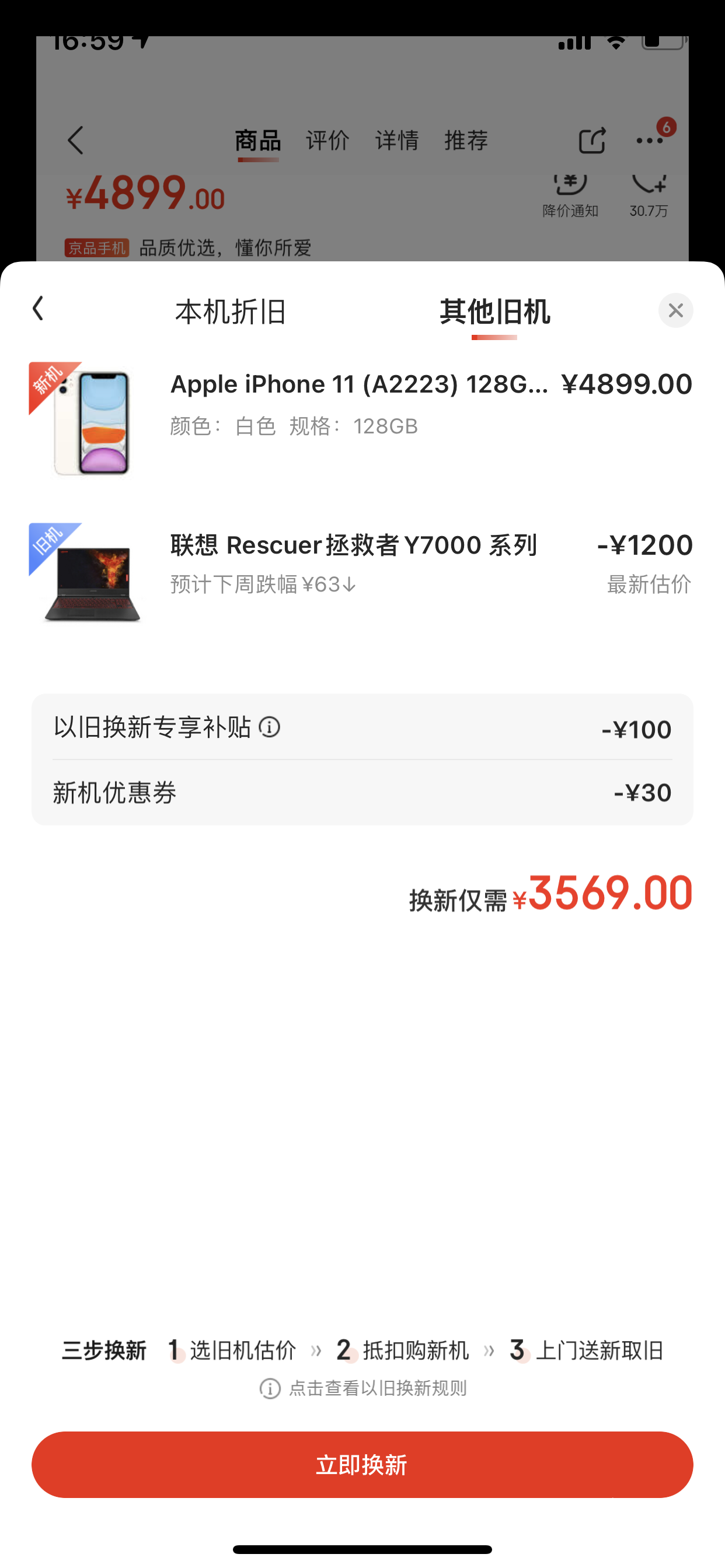 第一步,在京东搜索心仪的手机,在商品详情页找到以旧换新入口,点击立即换新。想要用当前使用的手机以旧换新,选择“本机折旧”即可自动检测出正在使用的手机型号,按照提示填写旧手机的信息,填完即可看到报价,根据旧手机的情况还能获得相对应地购机补贴。如果你想跨品类以旧换新的小伙伴,直接进入“其他旧机”页面,选择相应的品类和产品即可。