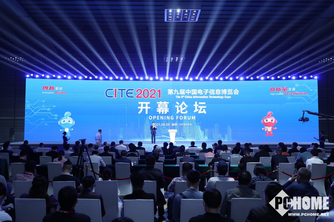 4月9日,第九届中国电子信息博览会(简称CITE2021)在深圳举办。深圳市人民政府市长陈如桂、广东省人民政府副秘书长陈岸明、工业和信息化部电子信息司司长乔跃山出席开幕式并先后致辞。北京大学教授、工业和信息化部原副部长杨学山,中国工程院院士、鹏城实验室主任高文,中国电子信息产业集团有限公司副总经理、党组成员陈锡明,荣耀终端有限公司董事长万飚,中国工程院院士、中国建材集团有限公司总工程师彭寿等嘉宾作开幕演讲。