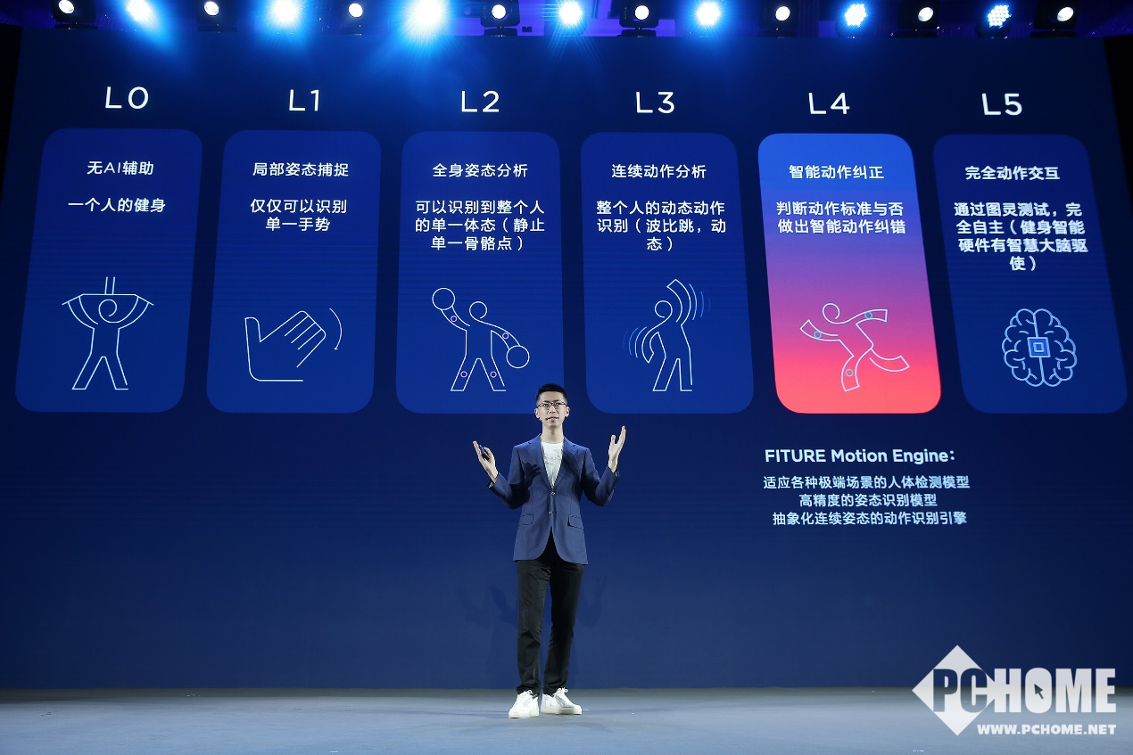 FITURE在“智能健身交互”体验上,还首次提出了人体动态识别能力的层级标准。该层级分为5个等级,涵盖了单一的手势识别,到由智慧大脑驱使的完全自主式交互体验,为智能健身行业的交互能力建立了通用的标准。