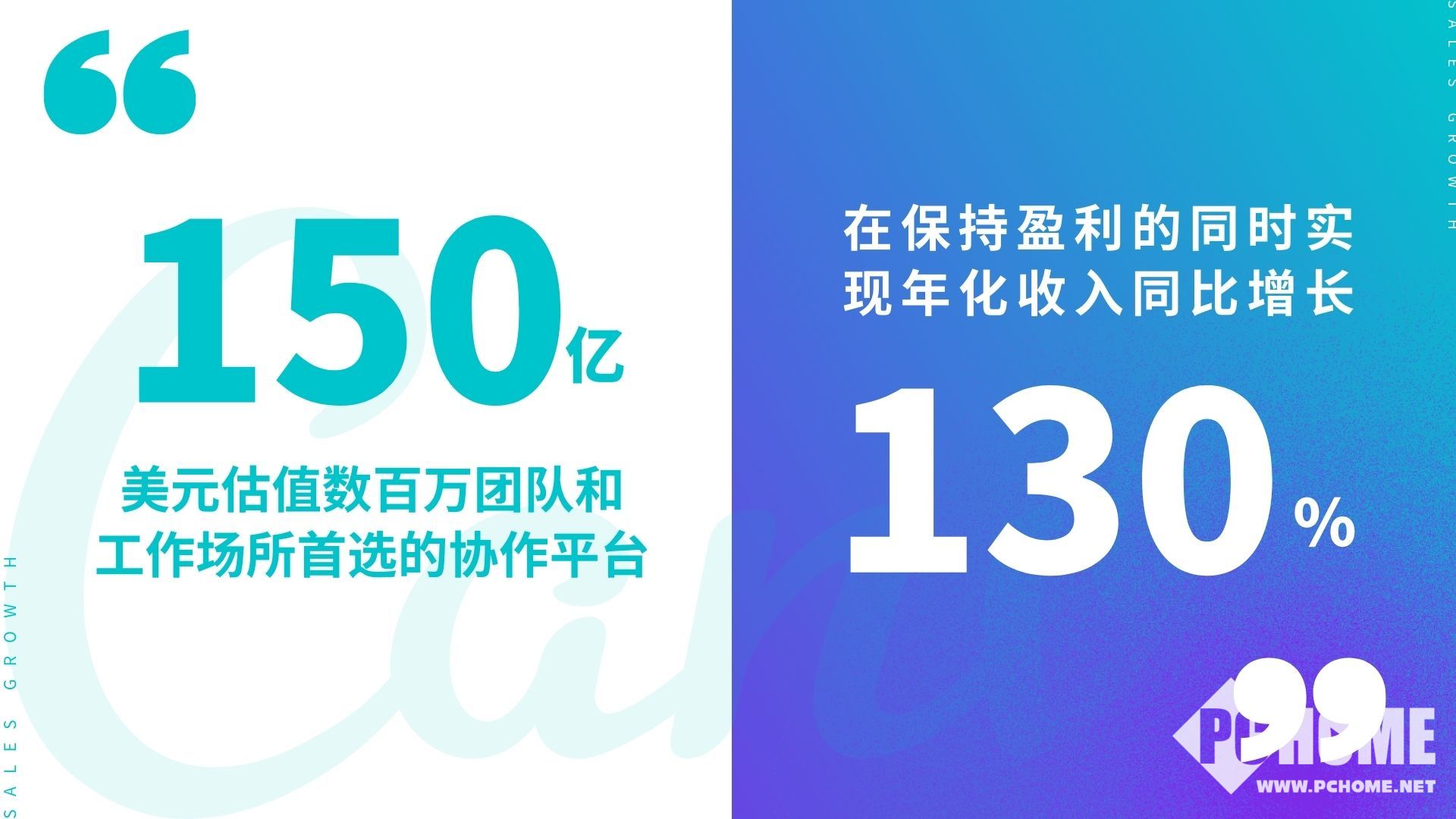 目前,Canva在全球已经成为许多企业和团队首选的协同平台,这个协同不仅仅是设计,甚至是做演示文稿、企业内部通知、企业名片的场景,都可以用到。现在全球有数百万的团队使用Canva的平台协同工作,Canva最新的估值已经达到150亿美元,在保持盈利的同时实现了年化收入130%的增长。