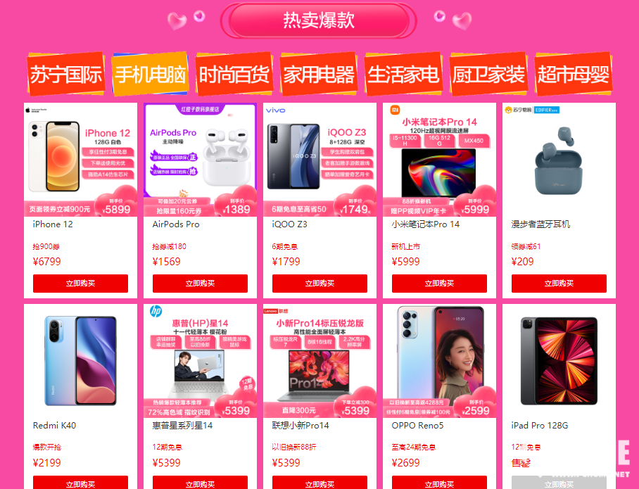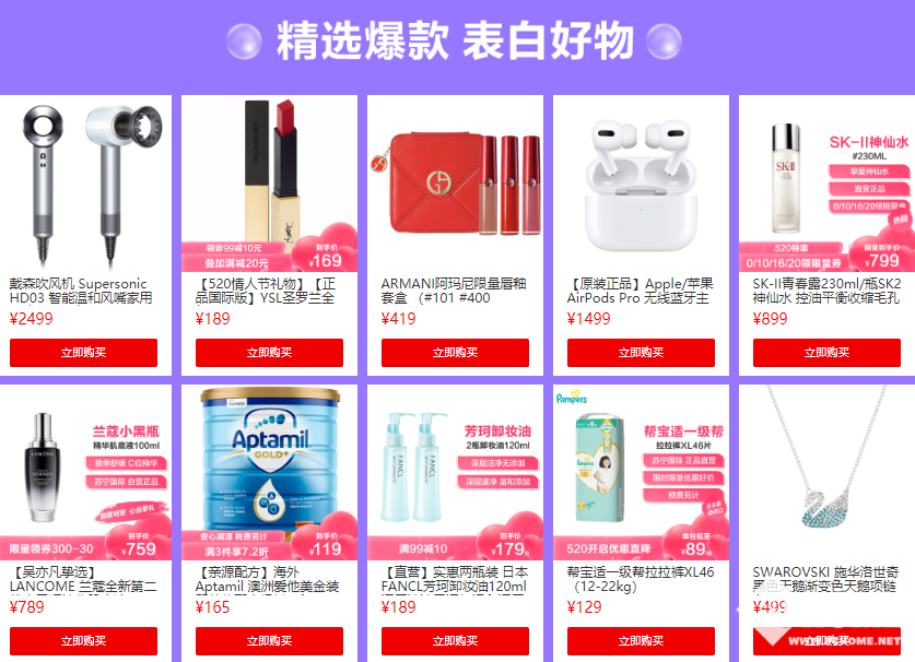 苏宁易购官网正在进行“520全球表白季”,送给小哥哥的数码产品、送给小姐姐的美妆产品应有尽有,美妆满30减30、手机电脑疯抢1100元券、国际好礼第二件半价等等,大家可以前往苏宁了解一下。