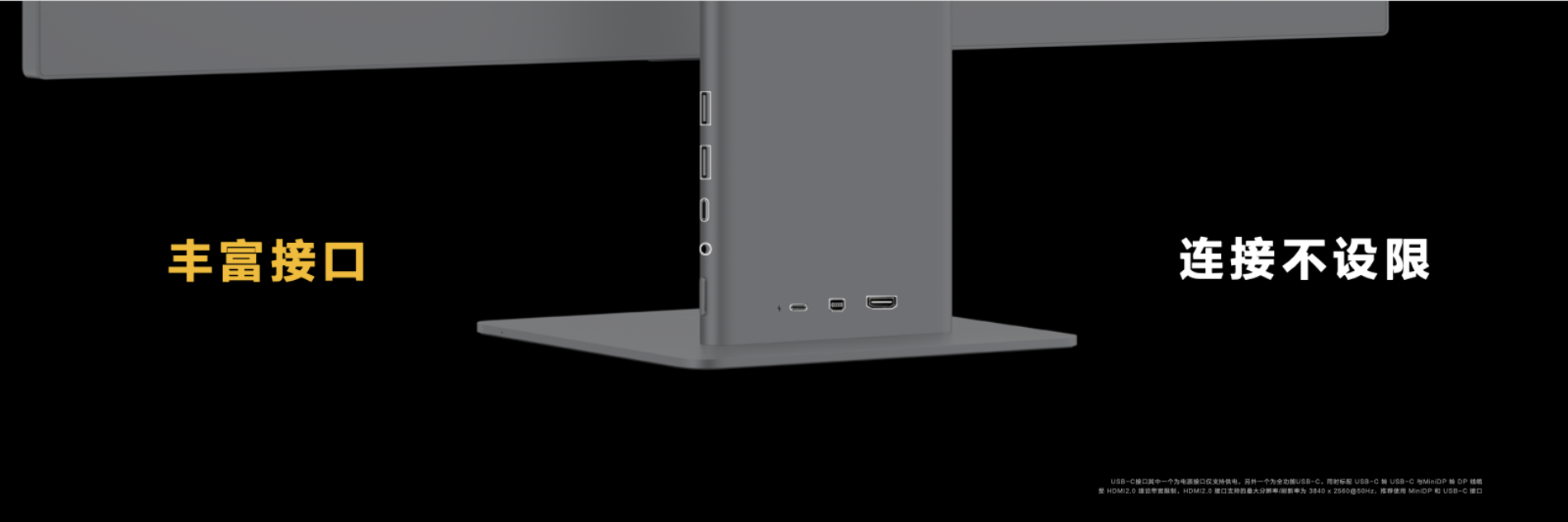 华为MateView依托华为通讯技术的积累,不仅支持有线连接,还支持与笔记本电脑的无线连接,让桌面告别乱线缠绕和杂乱无章。尽管支持无线连接,但华为MateView仍拥有丰富的接口:1个全功能USB-C,2个USB-A,1个HDMI,一个MiniDP和一个3.5mm耳机孔,能够满足你多样化的连接需求。值得一提的是,华为MateView还支持键鼠反控功能,键鼠只需连接到显示器便可反向控制笔记本、手机等输入设备。