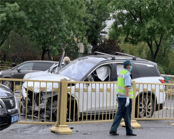 5月24日下午,北京市建国门内大街发生一起车祸,一辆蔚来ES8将道路中央隔离栏杆撞毁,数十米长的隔离带弯折成为“U”字形,好在对向并无来车,没有看到与其它车辆碰撞的痕迹。从现场图片上来看,这辆蔚来ES8车头左前部损毁严重,左侧气囊气帘全部弹出。