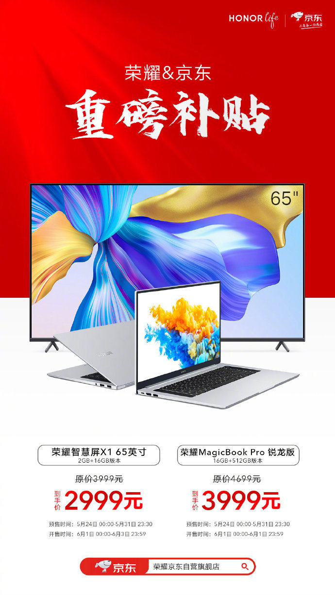 日前消息,荣耀智慧生活官方宣布618重磅补贴,其中荣耀智慧屏X1入选荣耀&京东联合重磅补贴计划。价格方面,荣耀智慧屏X1 65英寸2GB+16GB版本直降1000元,到手价仅需2999元。