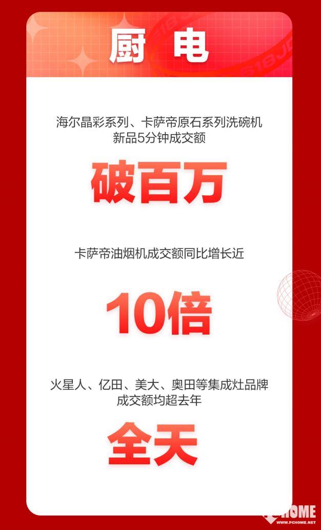 开启1小时,新风空调成交额同比增长8倍,游戏电视成交额1小时同比增长超5倍,融合洗碗机中的集成水槽成交额超去年全天,洗地机成交额超去年同期6月全月……