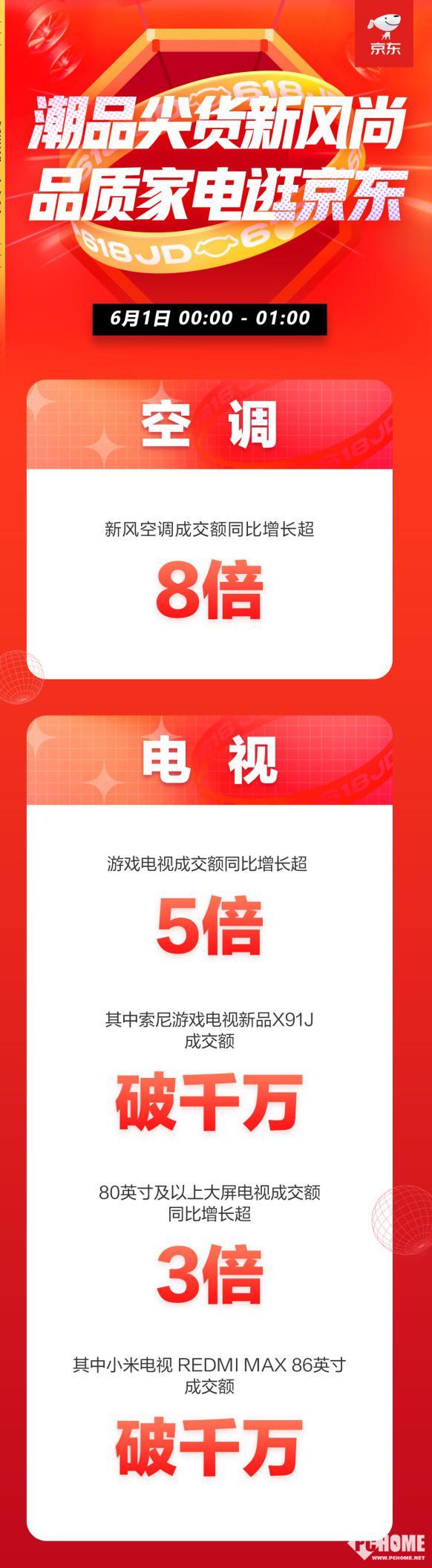6月1日,京东618正式开启。作为主力军的家电各大品类销售从0点开始就呈现出全面开花的态势。作为开年首个大规模消费盛宴,京东家电以“焕新你的生活”作为新的品牌主张,携手家电品牌厂商再次引爆年中消费热潮,在为消费者带来卓越家电消费体验,推动家电行业结构化升级的同时,成功实现“开门红”。