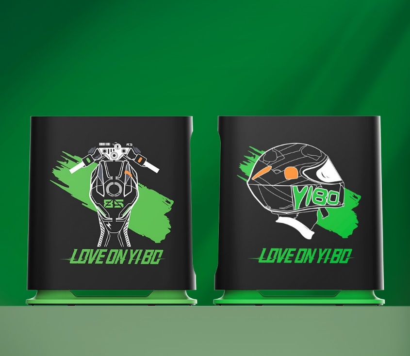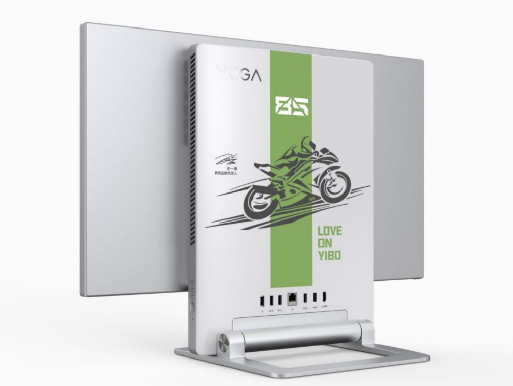 第三款则是联想YOGA 27王一博定制版, YOGA 27设计上延续定制系列的绿色和摩托元素,配合YOGA系列旋转的属性,能够满足多重使用场景的需求。横屏状态下玩游戏,旋转成竖屏的状态下,还能够刷短视频,可谓十分贴心。