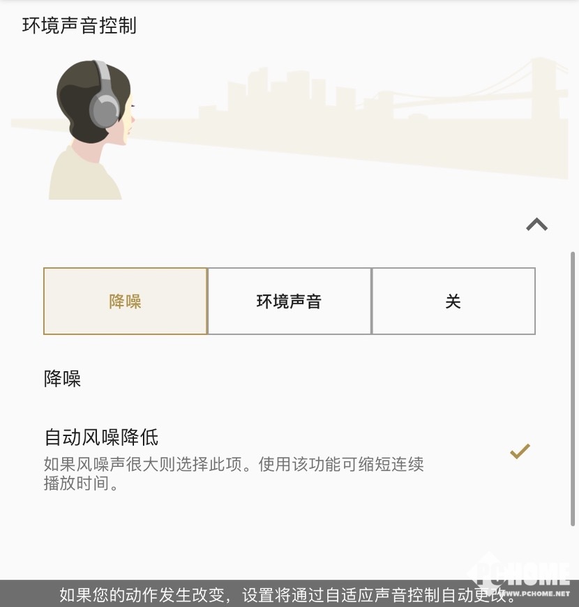 同时,WF-1000XM4也支持20级环境音调节以及AI智能降噪,用户可以根据自身的环境需求自行调节降噪/环境音的比重,或者将一切交给耳机本身,通过检测不同的活动状态和环境状态自动调节降噪/环境音模式。