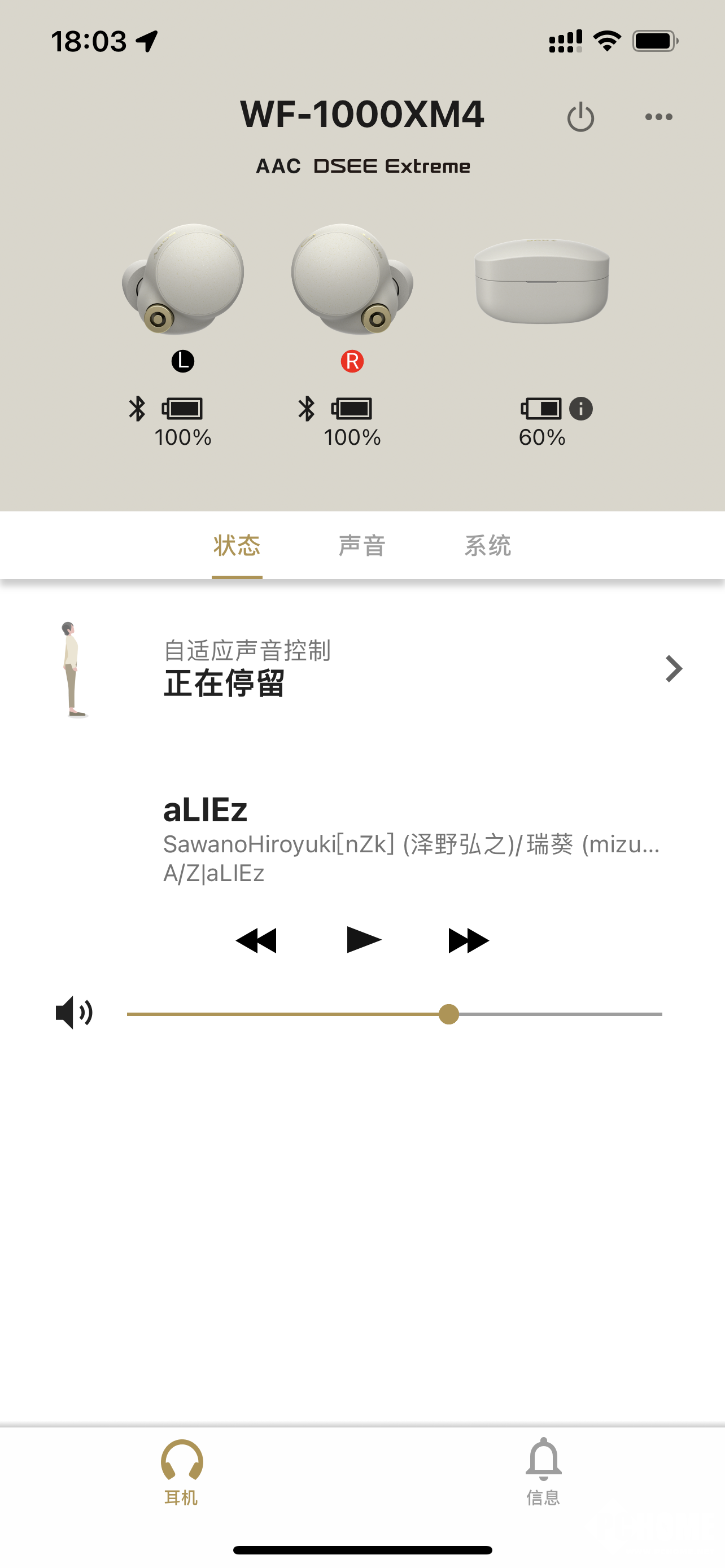 所以综合来看,索尼WF-1000XM4给我的感觉会更加适合一些欧美流行向或者摇滚类的歌曲,在这类歌曲中会发挥出接近于完美的声音效果;民谣类、轻流行歌曲方面,得益于索尼一直以来的轻度音染调教会更有韵味;而在ADC这类歌曲中,则是会出现上边说到的高频发挥受限导致的不够尽兴的感觉。