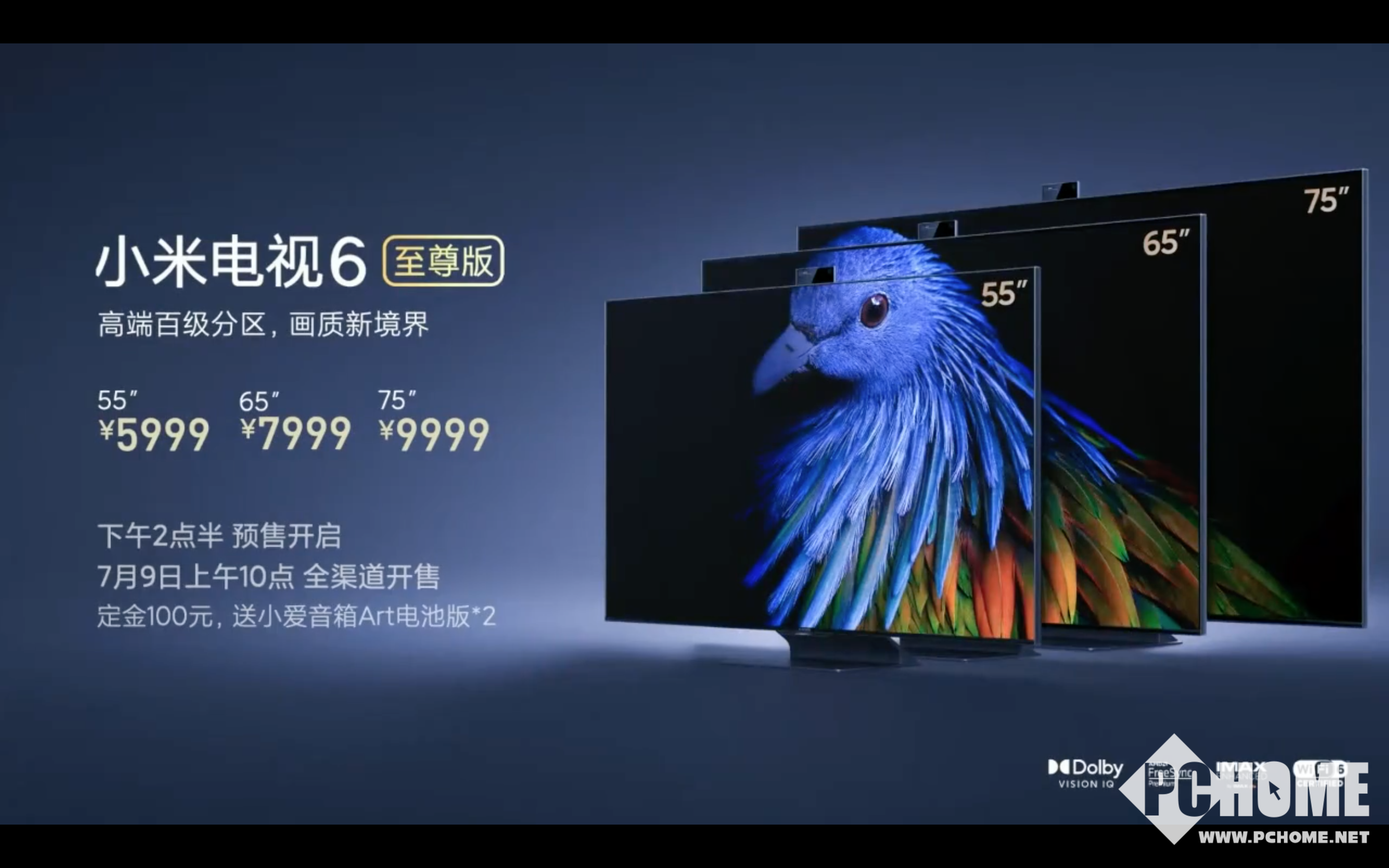 售价部分,小米电视6至尊版55寸为5999元,65寸为7999元,75寸为9999元。
