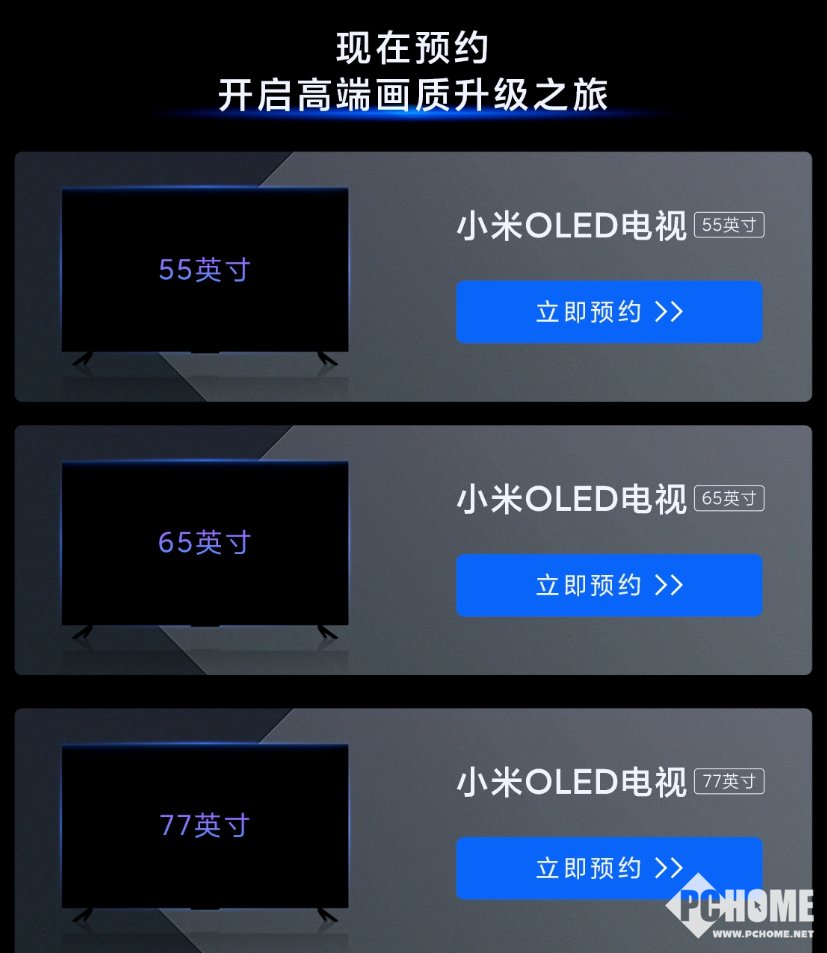 目前在小米京东自营旗舰店可以看到第二代小米OLED电视已经开始预约,目前可以预约的尺寸包括55英寸、65英寸以及77英寸,还有一款型号暂时还没有开启预约。