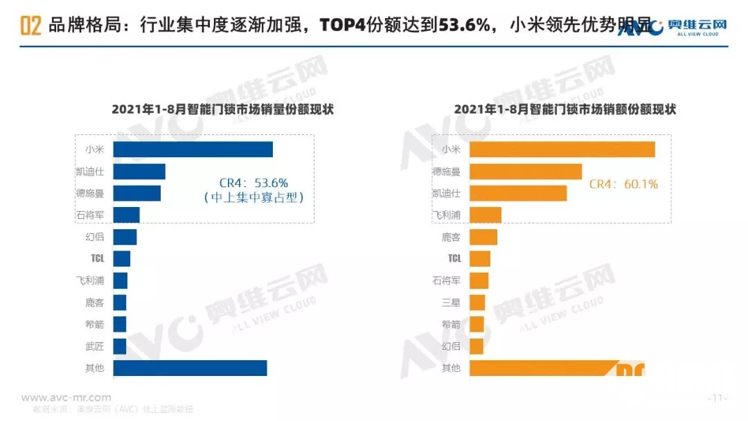 近日,奥维云网针对于家用智能门锁市场进行了深入调研,根据《2021年1-8月中国智能门锁线上市场总结报告》显示,2021年1-8月,中国智能门锁线上市场全渠道推总销量为269.7万台,同比增长53%,销额为40.5亿元,同比增长65%;
