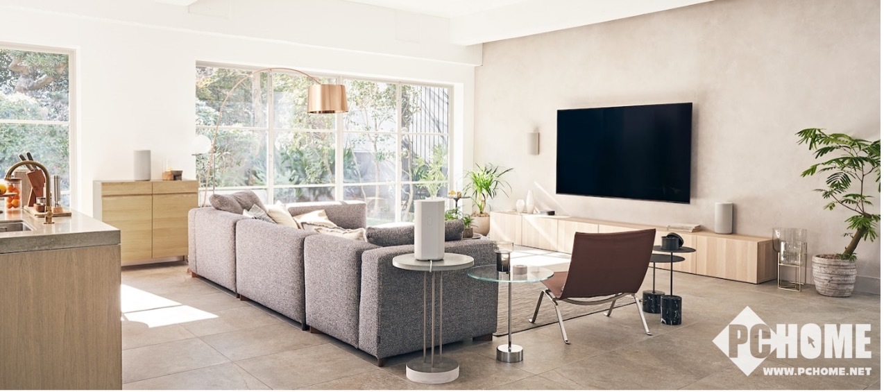 在外观上,HT-A9也体现出不同于传统家庭影音系统的新突破。4个书架大小的圆柱形独立扬声器以浅珍珠灰为配色,可轻松融入深色亦或是浅色调的家居环境,呈现出高级静谧的品质之感。扬声器通过无线连接的方式连接到解码控制器,使用户免于布线的困扰。无需调整家具布局,将扬声器灵活地摆放在方便的位置,用户便可轻松地享受到身临其境般的沉浸音效。