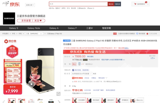 11月3日,京东手机11.11三星品牌日火热开启,全场至高立省2030元,还有至高1000元换新补贴,PLUS会员还能享至高再减600元,还有120天8折保值回购等等权益。