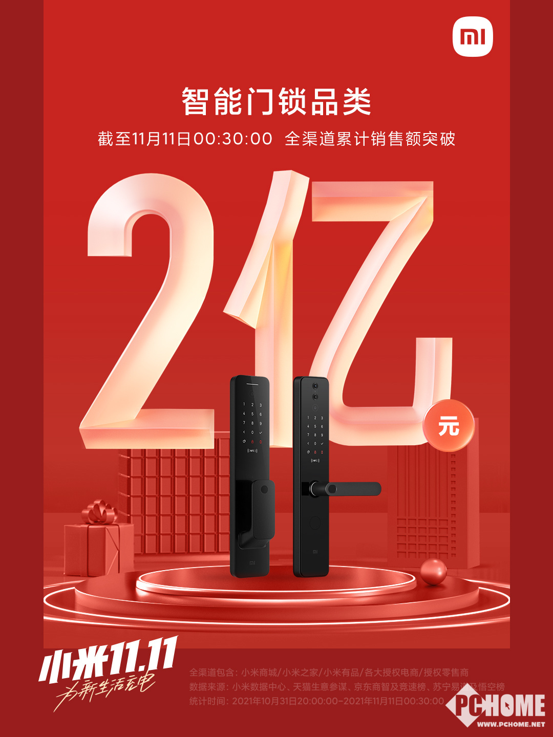 具体品类方面,截至11月11日00:30:00,智能门锁品类全渠道累计销售额突破2亿元;净水器品类全渠道累计销售额突破2亿元;路由器品类全渠道累计销量突破50万台;扫地机品类全渠道累计销量突破10万台;吸尘器品类全渠道累计销量突破10万台;摄像机品类全渠道累计销量突破25万台;空气净化器品类全渠道累计销量突破15万台;加湿器品类全渠道累计销量突破25万台;智能音箱品类全渠道累计销量突破40万台;米家空气炸锅全渠道累计销量突破9万台。截至11月11日00:30:00,米家空调品类全渠道累计销量突破12万台;米家直驱洗烘一体机10KG全渠道累计销售额突破4000万元;米家互联网迷你波轮洗衣机Pro 3KG,全渠道累计销量突破25000台。