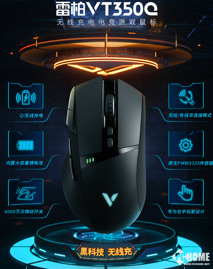 雷柏VT350Q则是一款中端的游戏电竞鼠标,双十二秒杀价149元起,该鼠标除了支持有线和无线双模连接之外,这款鼠标最明显的产品特性就是支持Qi无线充电,让你远离电缆的束缚。采用德州仪器的专业2.4GHz无线解决方案,支持4种传输速率,响应时间低至1ms。拥有600微动开光,按键反馈非常清晰。编程键更是多达11个。鼠标造型采用流线型设计,在方便持握的同时也增加了鼠标的美感。