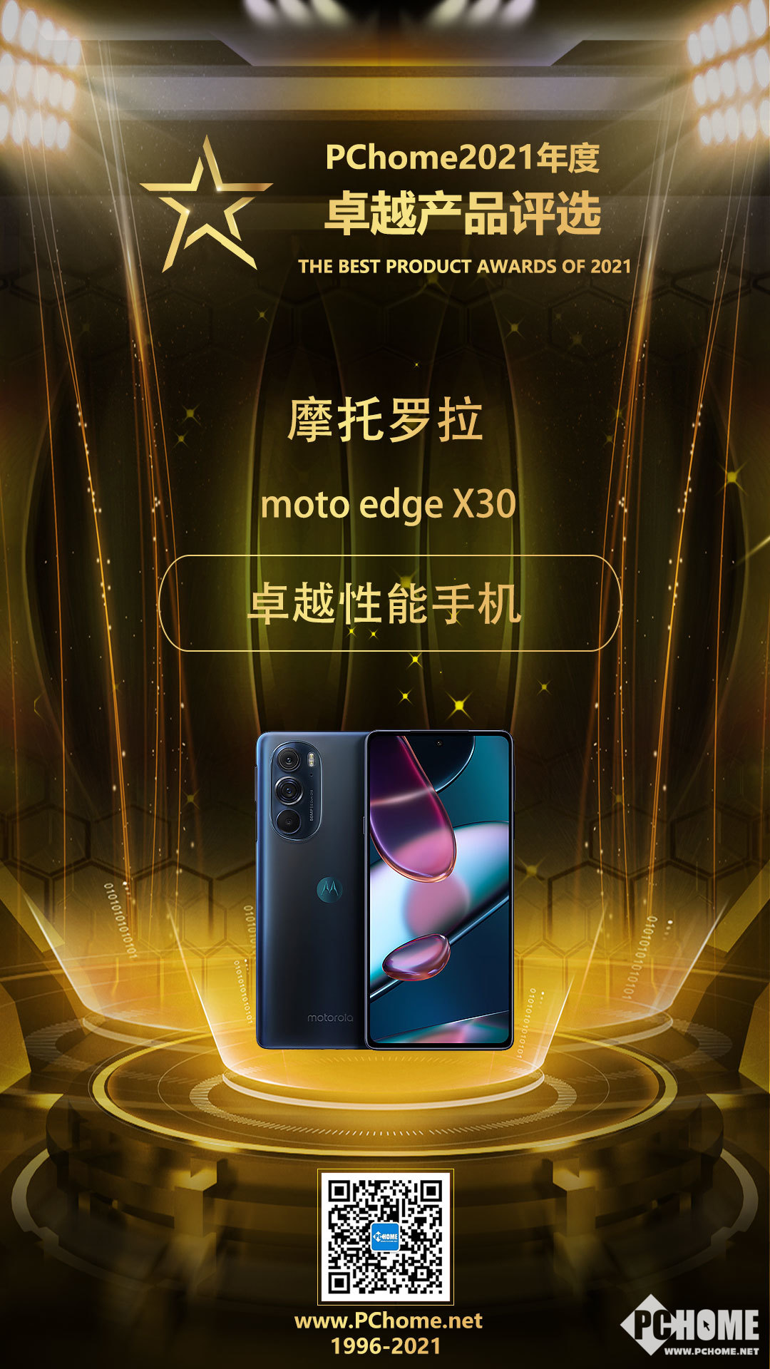 moto edge X30荣获2021 PChome“卓越性能手机”奖