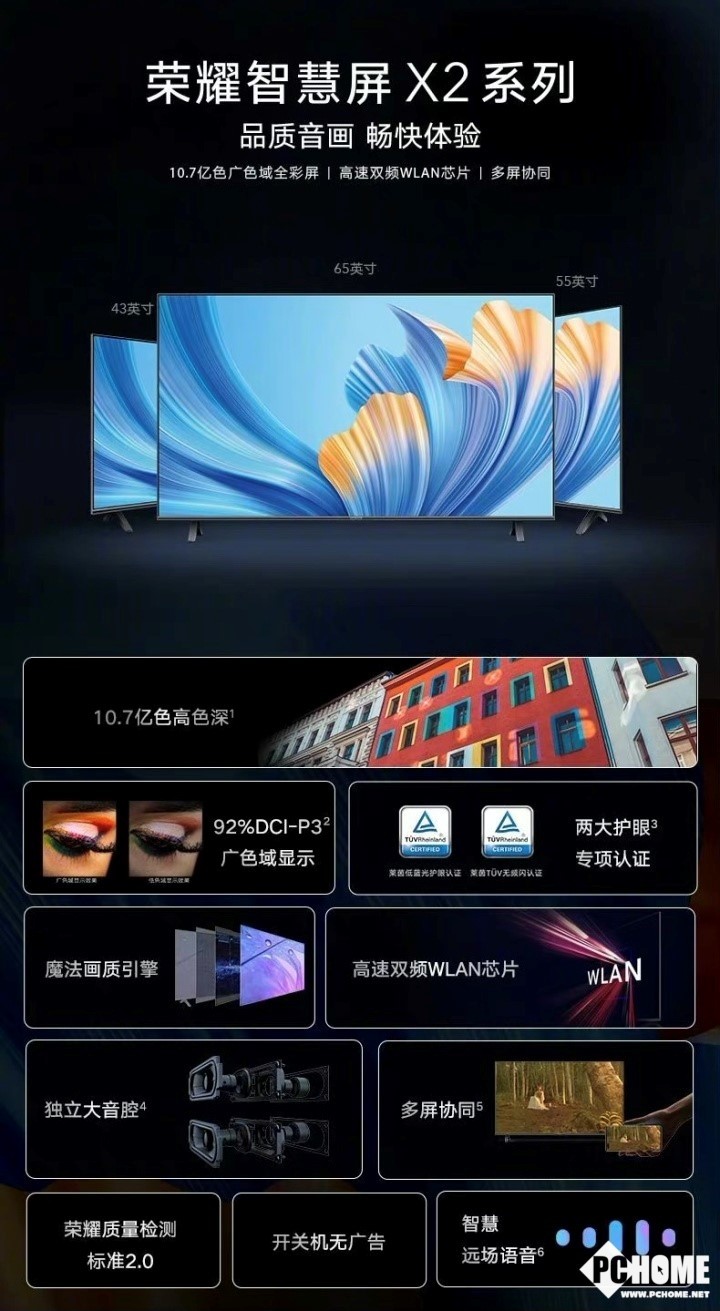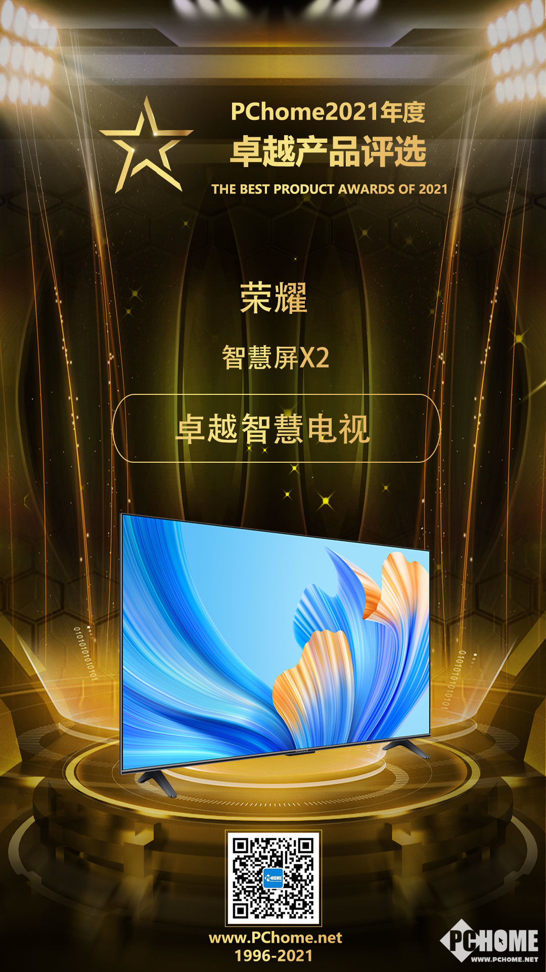 评选结果近期已经揭晓。其中,荣耀智慧屏X2荣获2021 PChome“卓越智慧电视”奖。该奖项旨对2021年度发布的智能电视产品进行筛选,通过我们的专业深度评测、电商平台评价、第三方研究机构发布的产品满意度调查等,多个维度深度解剖,对参评产品进行的真实评价。
