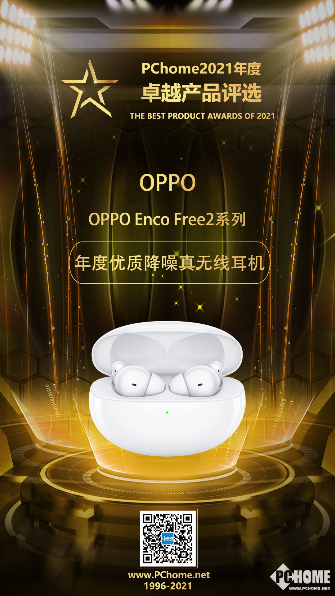 OPPO Enco Free2系列荣获2021 PChome“年度优质降噪真无线耳机”奖。