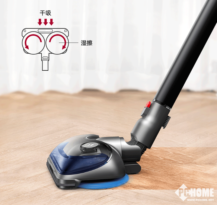 小狗擦地吸尘器T12 Plus Rinse采用旋转擦地刷,可以前吸后刷。前吸后刷结构拥有电动程序供水,刷头前进自主助推,让用户更加省力。清洁布拥有148mm大直径,采用3层复合材质及捻布工艺,不是单一材质清洁布,可以强力去污,做到锁水、锁灰。
