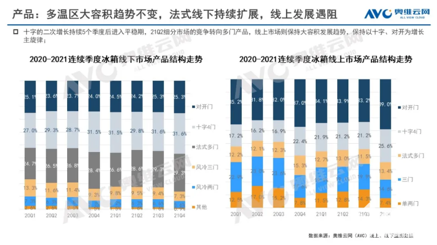 奥维云网表示尽管冰箱生产材料价格略有回落,但企业自身节能减排压力仍在,整机出厂价格短时间内仍将维持较高水位。当前冰箱市场的产品结构进入稳定期,多温区&大容积的主基调不变。