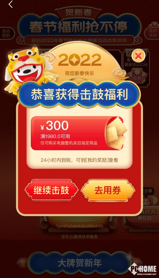 据悉,从大年初七至元宵节期间,“击鼓迎春”全程在线,用户可通过京东APP参与活动领取专属好物福利,一直到正月十五元宵节,用户在总台元宵晚会期间,依然可以来京东领好物、分红包,看元宵晚会,最高领2022元!
