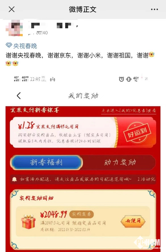 值得一提,作为2022年春晚独家互动合作伙伴,今年京东在2022虎年春晚期间,为广大观众、用户带来玩法最简单、福利最多样、持续时间最长的全新互动体验。有幸运网友晒单显示:1分钱抢到京东送出来的小米Redmi K40手机!在源源不断的惊喜下,广大观众尽情享受到了春晚奖品互动的喜悦! 值得一提的是,春晚抢到了1分购实物奖券的幸运儿,但是还没有进行兑奖的,一定要把握住14天兑奖的期限内,及时前往京东APP,点击“我的”,然后选中中间的“你有一份新春福利”的红色框,进入之后点击“实物奖券”,选择“立即使用”就可以进行兑换哦。