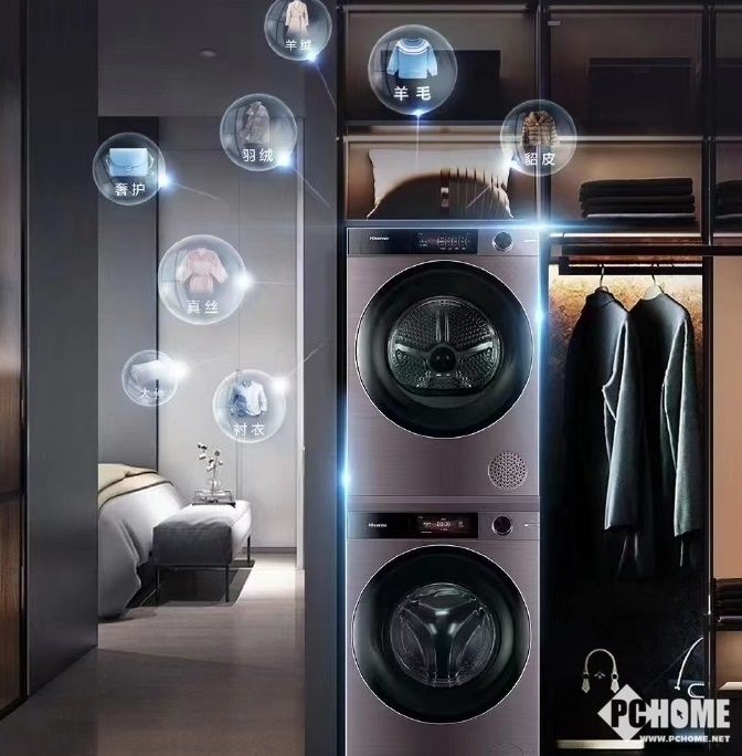 首先是海信洗衣机推出了一款海信璀璨高端洗烘护理套装,主打AI焕新洗护,千万级面料数据精准识衣、8种材质智能调节。海信璀璨高端洗烘护理套装支持自动感知空气湿度,自动调整烘干程度,保证衣物烘干到位。其还能自动感知水质软硬度,并调整洗涤剂与柔顺剂投放量,确保衣物清洁到位。海信璀璨高端洗烘护理套装还能抓取用户使用习惯,初次使用6次以上,再次使用无须调节,一键即可调整到常用程序。