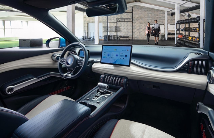 元PLUS内饰由速度蓝、力量灰双色搭配,中控台以一条有力的龙须承载,肌肉流线贯穿门板和仪表板;一体式运动座椅兼顾安全、舒适与动感;哑铃式空调出风口、跑步机式中央扶手台、琴弦式门板装饰件等细节处的精巧设计,将元PLUS的运动新潮逐一彰显。