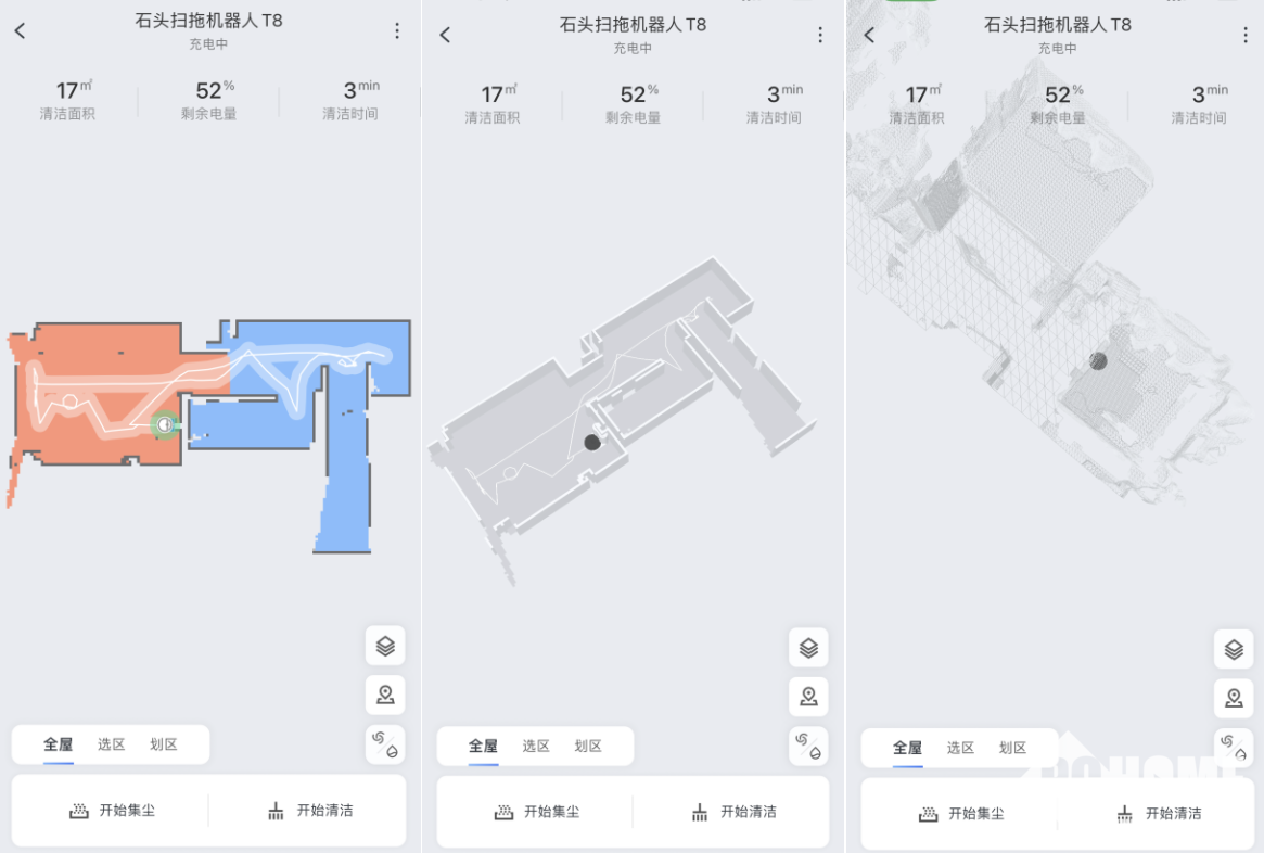 除了2D地图之外,石头扫拖机器人T8还能建立3D地图以及Matrix地图。3D地图的优势是可以为用户提供更直接的视觉体验,更有利于用户进行禁区、虚拟墙的设置。