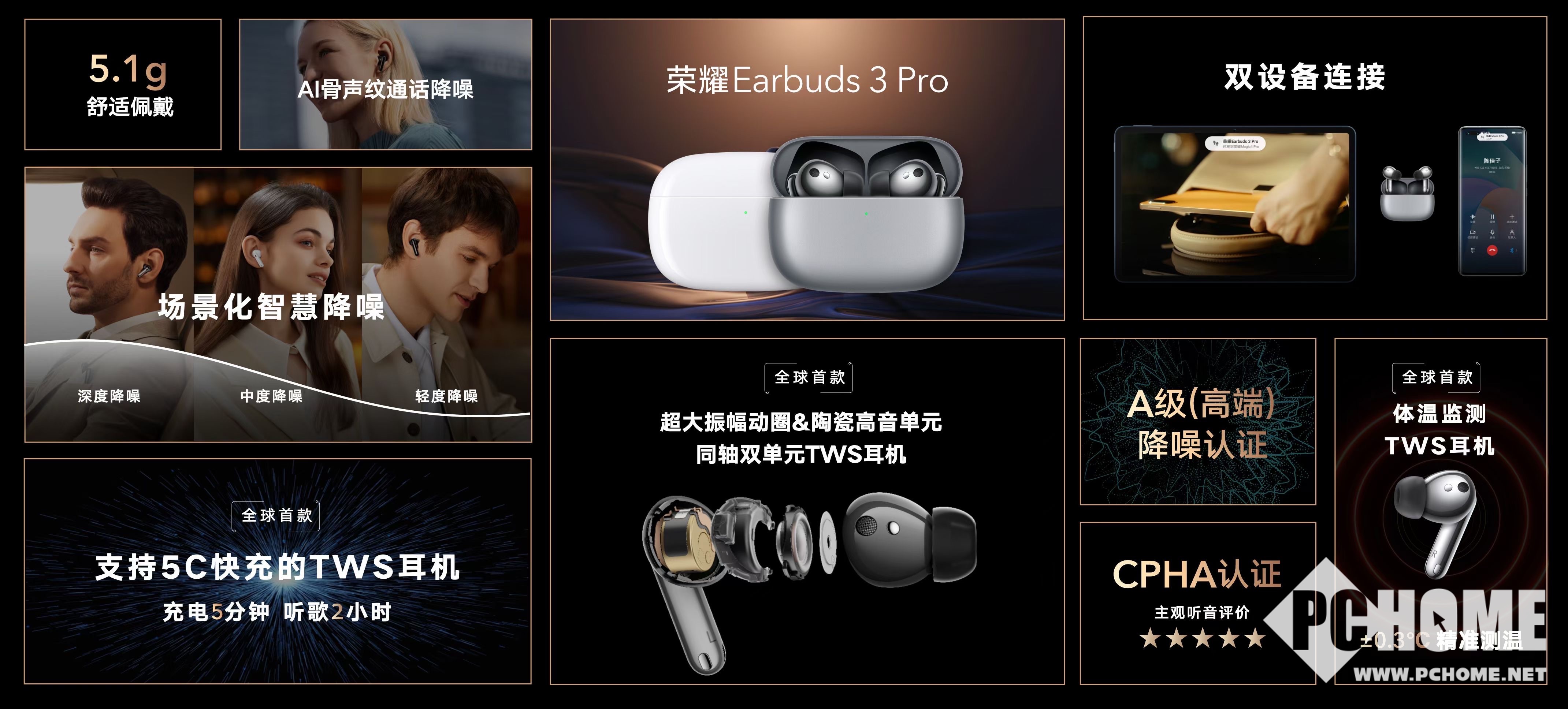 3月17号消息,荣耀年度音质旗舰真无线耳机——荣耀Earbuds 3 Pro正式发布,这是全球首款采用超大振幅动圈与陶瓷高音单元的同轴双单元的TWS耳机、全球首款支持测温以及全球首发支持5C快充技术的TWS耳机。