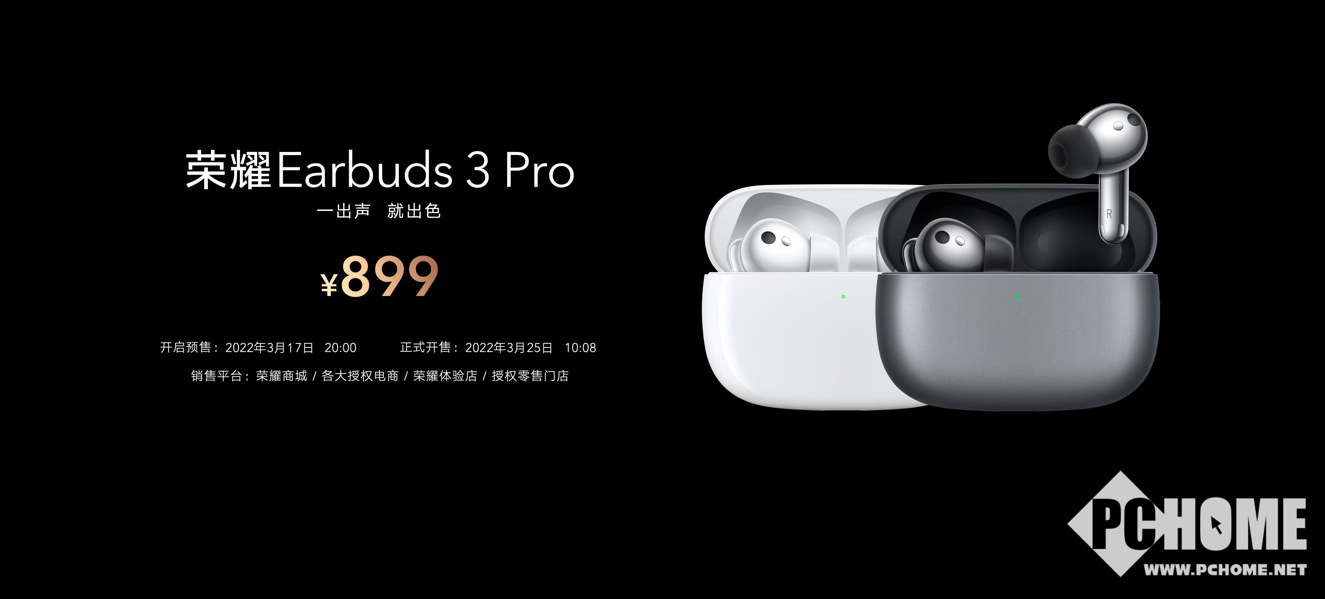 荣耀Earbuds 3 Pro拥有釉白色、亮黑色、钛银色三色可选,售价为899元,将在3月25日正式开售。