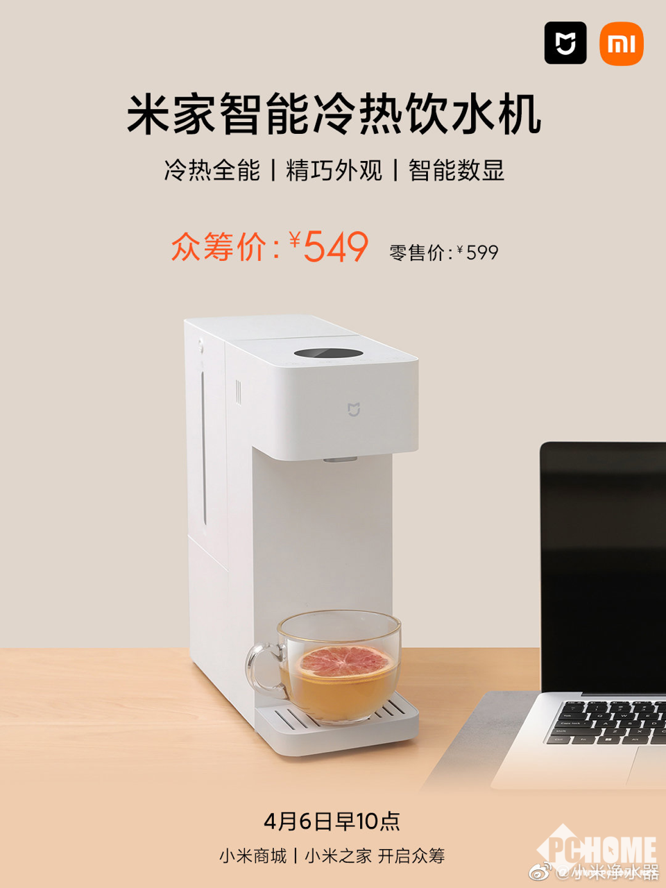 近日消息,小米宣布米家智能冷热饮水机即将在4月6号上午10点开启众筹,众筹价格为549元。米家智能冷热饮水机新增制冷功能、3秒速热、拥有3L容量、全水路杀菌。