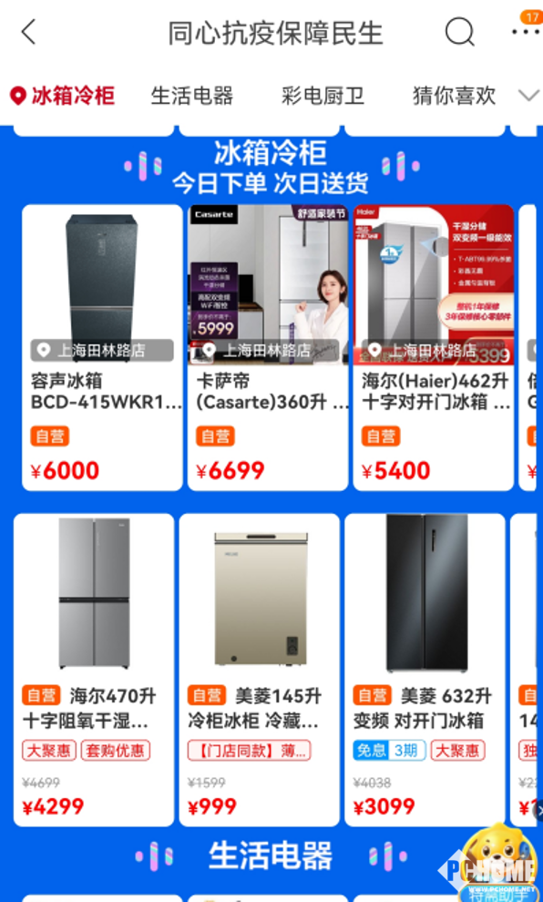针对上海市民的家电需求,苏宁易购调整了“同心抗疫保障民生”专场,新增了大家电,并承诺:今日买,明日送达,包括手机、电脑、打印机、微波炉、热水器等,全力保障市民特殊时期的生活需求。登陆苏宁易购APP,搜索“抗疫物资”即可进入专场,购买“次日达”家电。