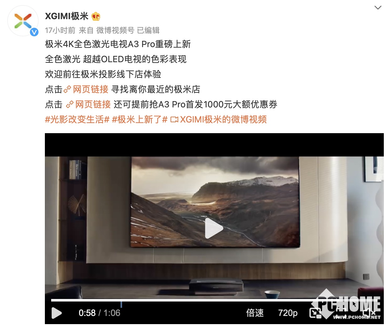 但是在电商平台可以看到A3 Pro的界面显示“暂时缺货”状态,极米官方在微博评论区表示“目前A3 Pro还没有正式首发,感兴趣的话可以先领1000元大额优惠券,等正式首发后就可以抵扣使用了。”