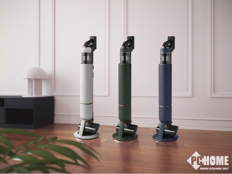 BESPOKE HOME家族今年的新成员BESPOKE缤色铂格吸尘器可谓不容小觑,配置的一体式多功能清洁站采用三星“空气脉冲”技术,在自动清空集尘盒的同时还能为吸尘器电池充电,无需手动倒出灰尘,卫生贴心不脏手。智能数字变频马达提供强劲吸力,适用于清洁多种类型地板,强大性能带来高效清洁表现。在外观设计方面,轻量化设计提升了使用效率和便捷性,手持式机身仅重1.44 公斤,打扫房屋轻松又省力。子夜蓝、松黛绿和晨雾白的丰富色彩选择,让吸尘器完美适配家居风格,静静伫立时更像是一件具有赛博风采的工艺品,所到之处点亮空间。