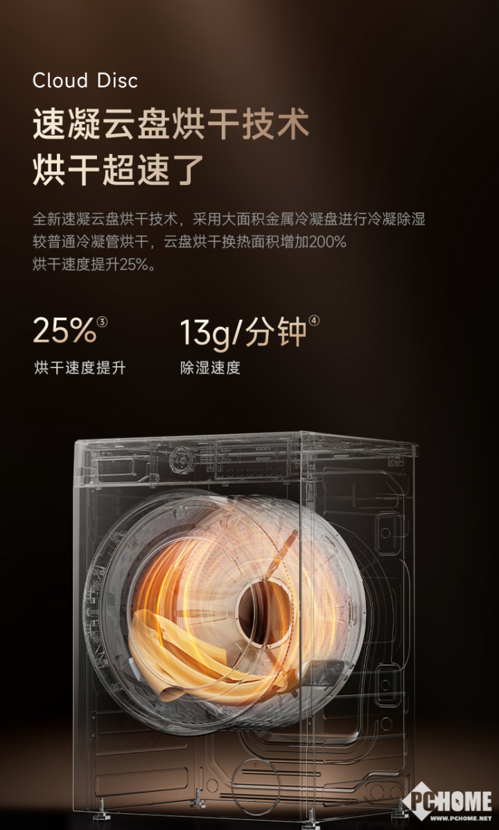 追觅自研速凝云盘烘干技术,让烘干从此不再耗时。采用大面积金属冷凝盘进行冷凝除湿,烘干面积增加200%,烘干速度提升25%,大件床单也能迅速蓬松出舱。P5用精准气流与热泵算法控制每一度温差——既要干得快,也要干得柔。在追觅眼里,速度不是粗暴的效率,而是一种生活的从容。